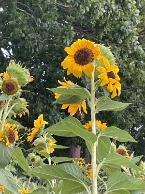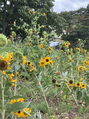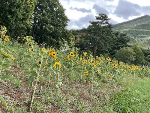 コスモス畑から更に上へ歩いて行くとひまわりもまだ咲き誇って。